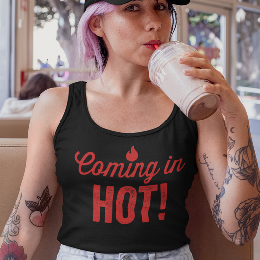 Coming in Hot Womenâs Fitted Racerback Tank Top