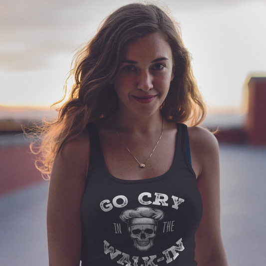 Go Cry in the Walk-In Women’s Fitted Racerback Tank Top